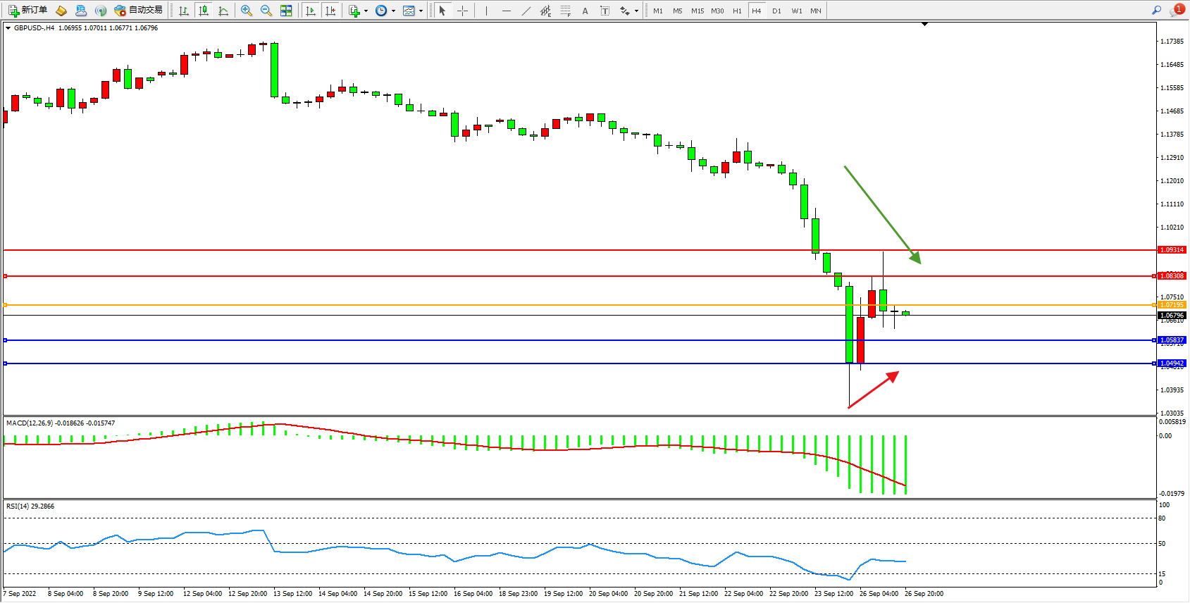 英镑美元GBPUSD ——4小时K线图显示: