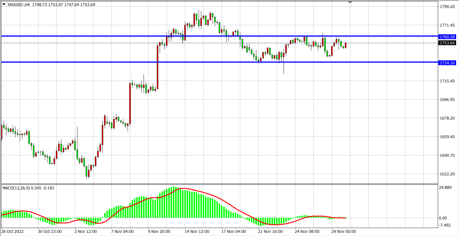 现货黄金XAUUSD    4小时图