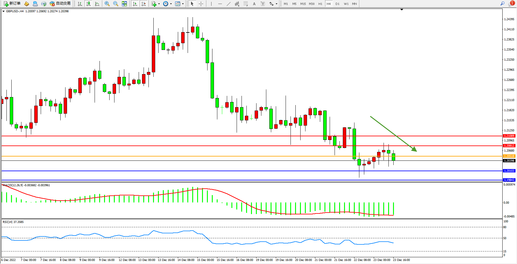 英镑美元GBPUSD ——4小时K线图显示: