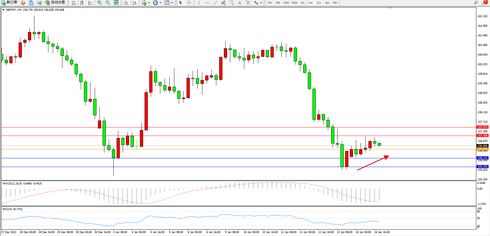 交易策略:156.525上方看涨,目标157.108、157.475