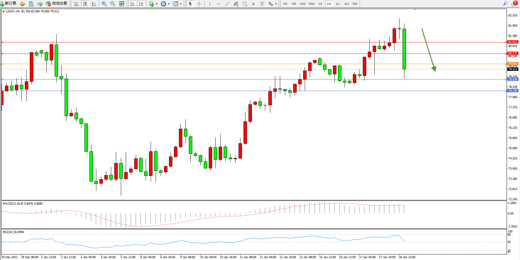 4小时图看:高位空头动力急速下挫,市场空头情绪笼罩,短期跌势或将延续,市场整体处于高位急速下挫在,MACD指标处于多头区域整理,RSI指标处于多头区域高位急速回撤;