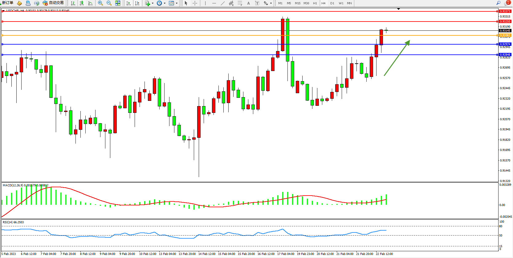 美元瑞郎USDCHF——4小时K线图显示: