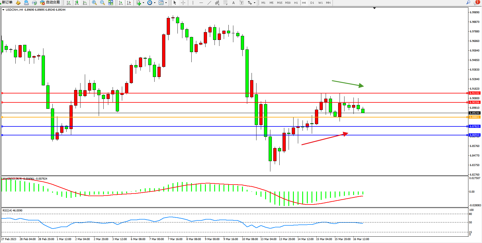交易策略:6.88801上方看涨,目标6.90356 6.91332