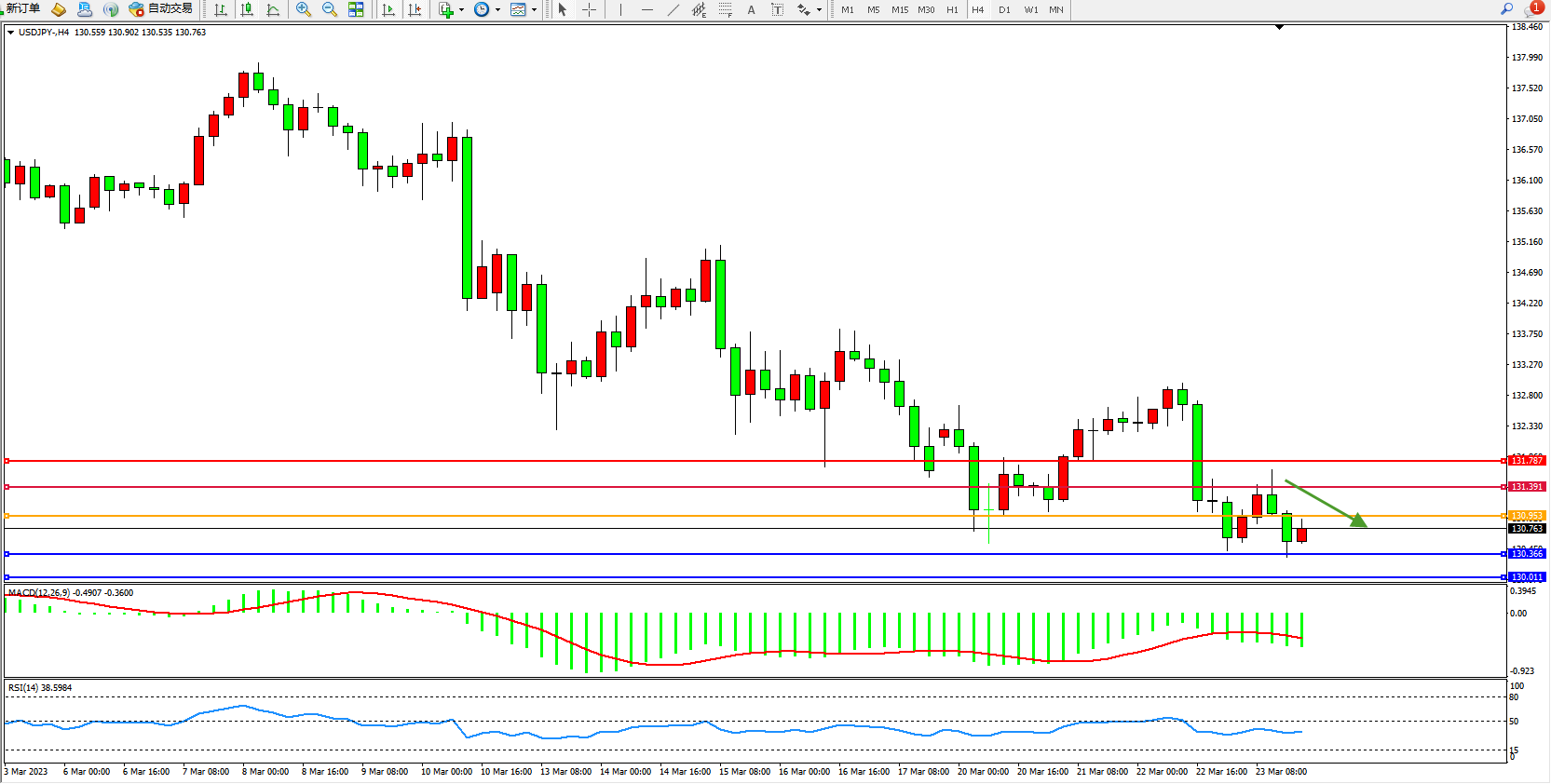 交易策略:130.953下方看跌,目标130.366 130.011