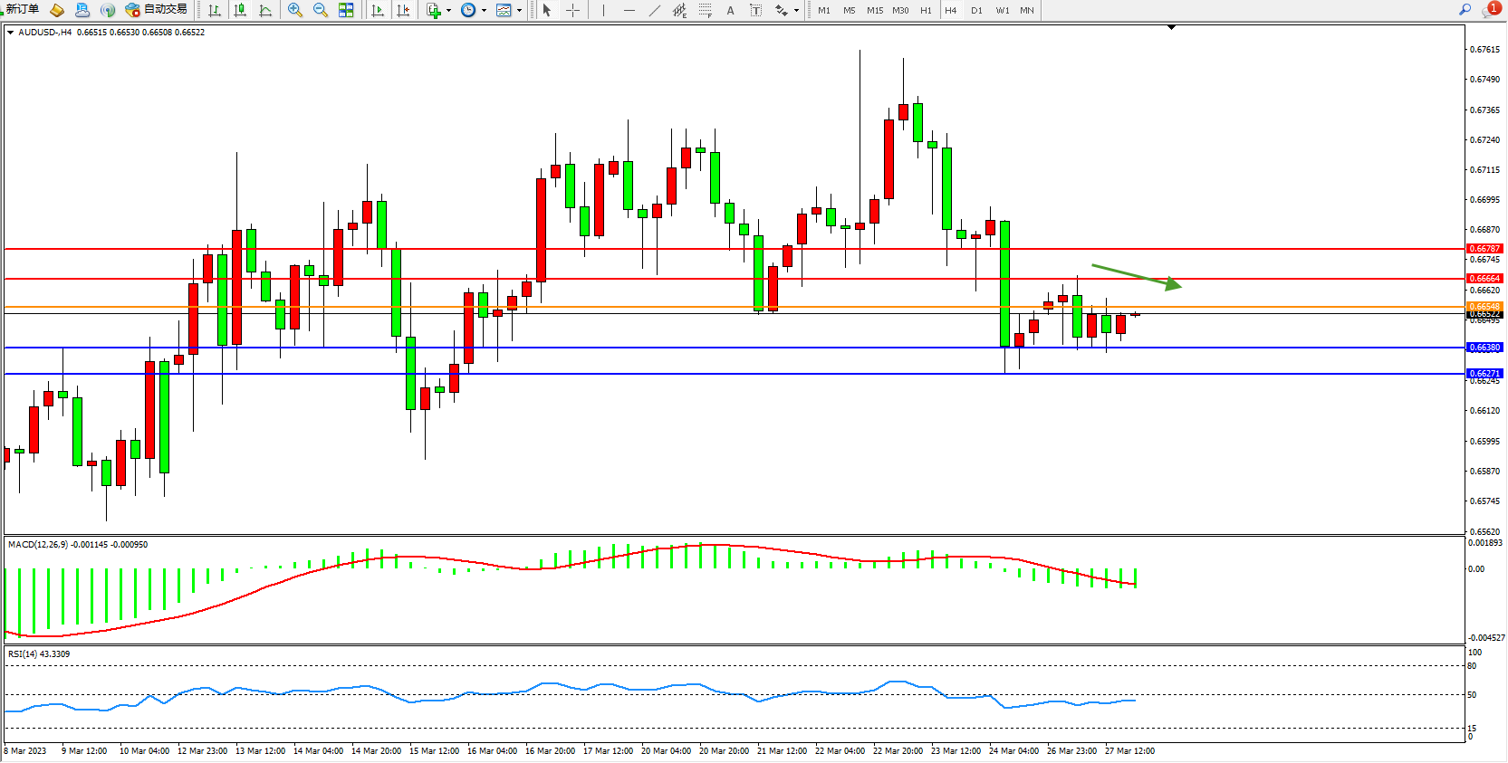交易策略:0.66548下方看跌,目标0.66380 0.66271