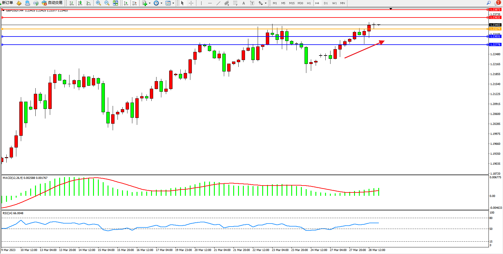 英镑美元GBPUSD ——4小时K线图显示: