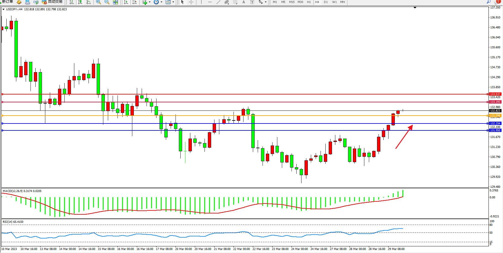 交易策略:132.598上方看涨,目标133.193 133.537