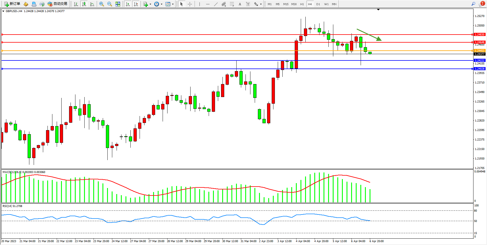 英镑美元GBPUSD ——4小时K线图显示:
