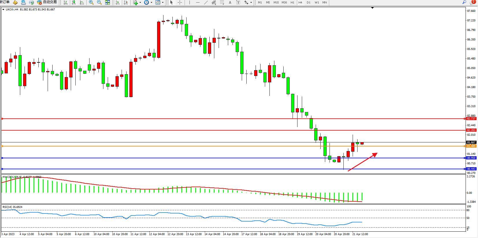 交易策略:81.489上方看涨,目标82.203  82.737