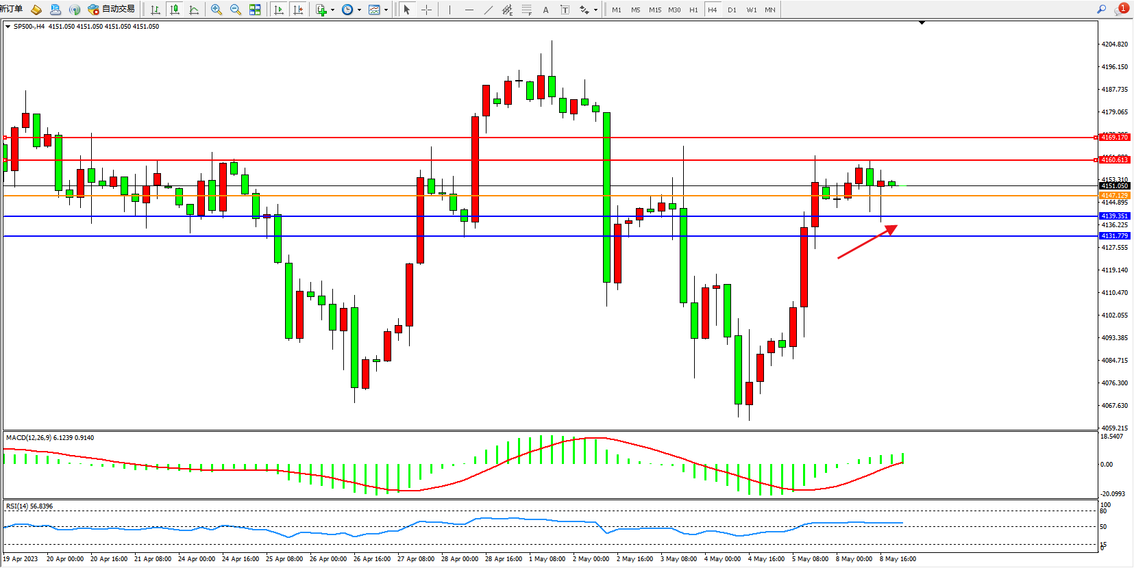 标普SP500——4小时K线图显示: