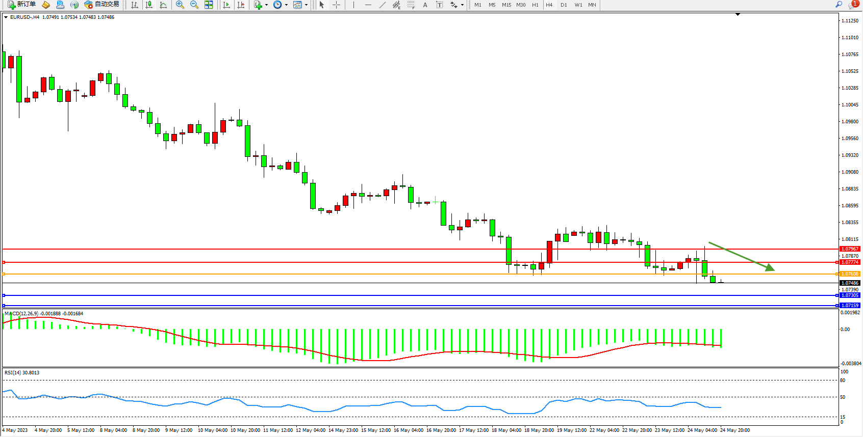备选策略:1.07608上方看涨,目标1.07774  1.07967