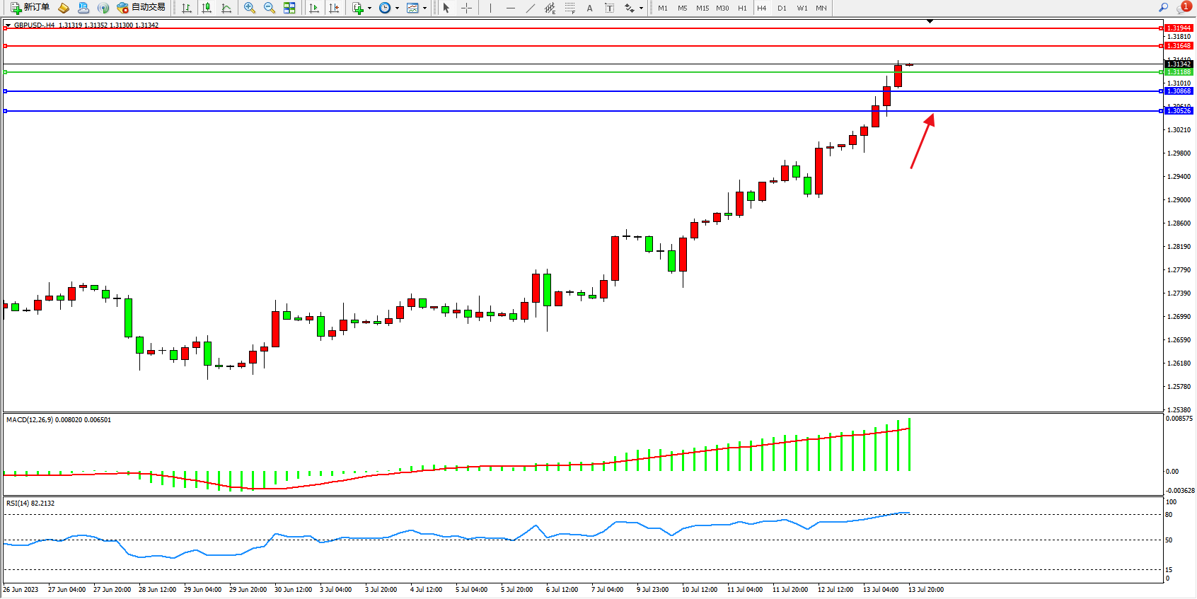 英镑美元GBPUSD ——4小时K线图显示: