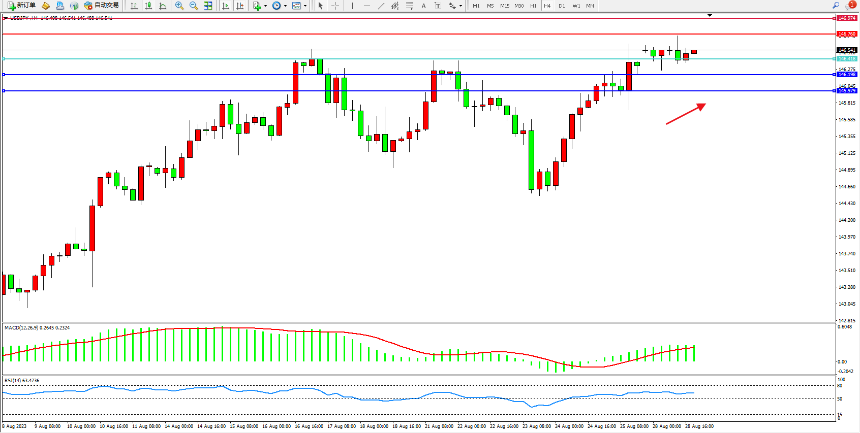 阻力位:146.760  146.974