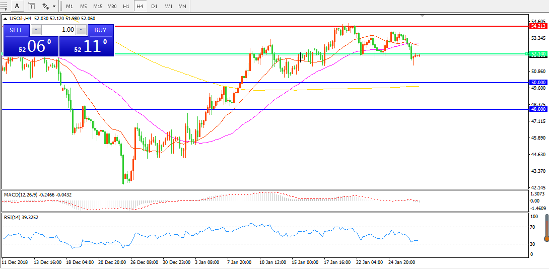 交易策略:在52.00之下看跌,目标50.00 48.00