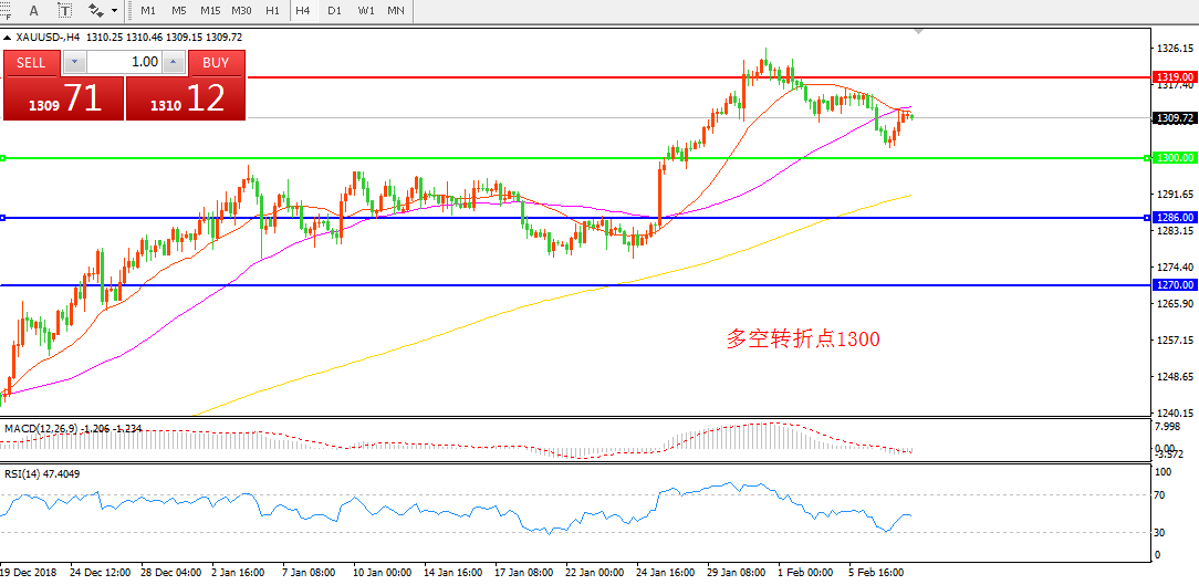 交易策略:在1300.00之上看涨,目标1320.00  1330.00