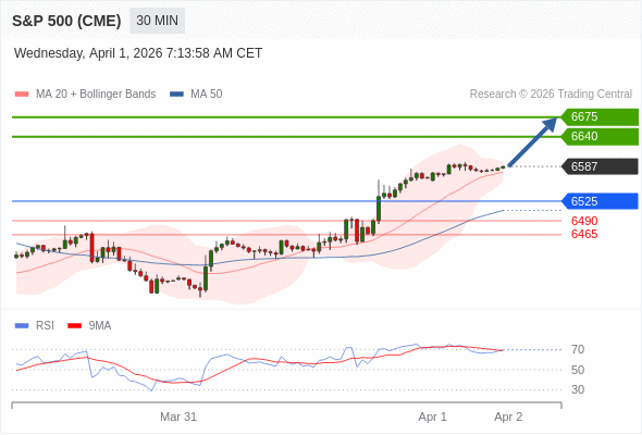 在 6525 之上,看涨,目标价位为 6640 ,然后为 6675 。