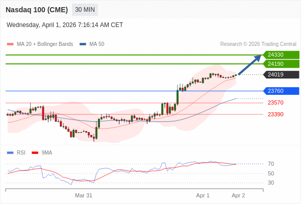 在 23760 之上,看涨,目标价位为 24190 ,然后为 24330 。