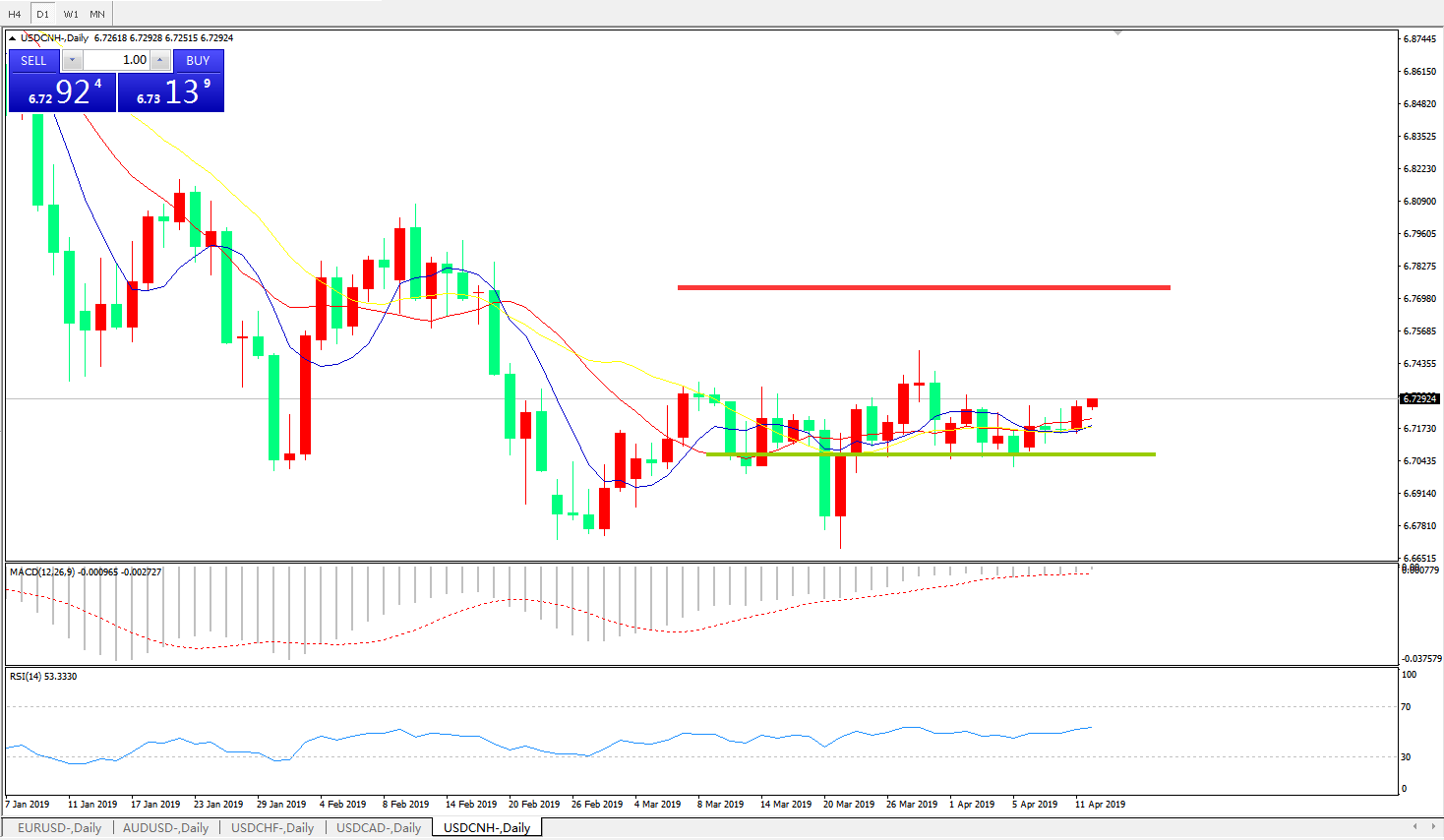 交易策略: 在6.6990之上,看涨,目标价位为6.7845,然后为6.8185。