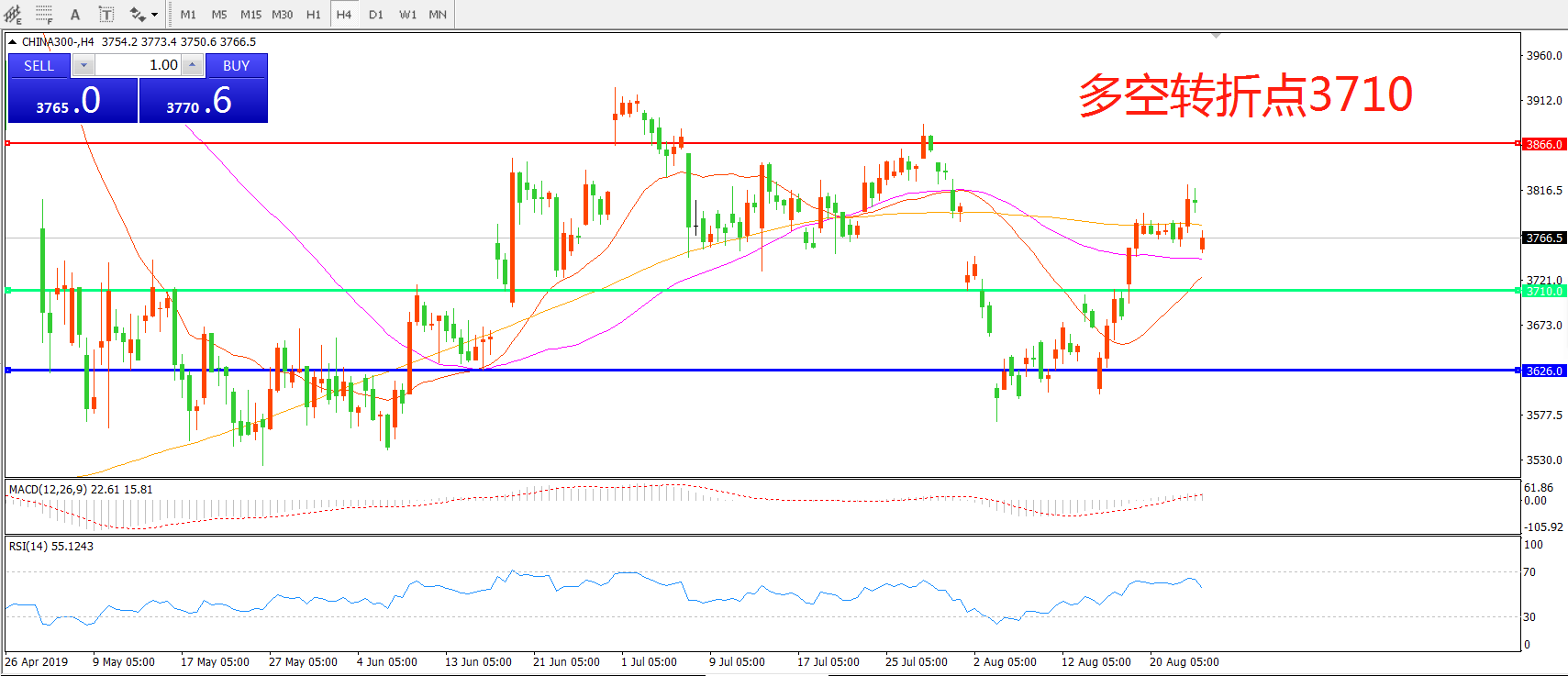 4小时图看,沪深300指数维持窄幅震荡后阳线突破,整体走势偏多,均线系统走平,形成下方支撑,MACD红柱增加,RSI指标向上,日内延续上行概率较大。