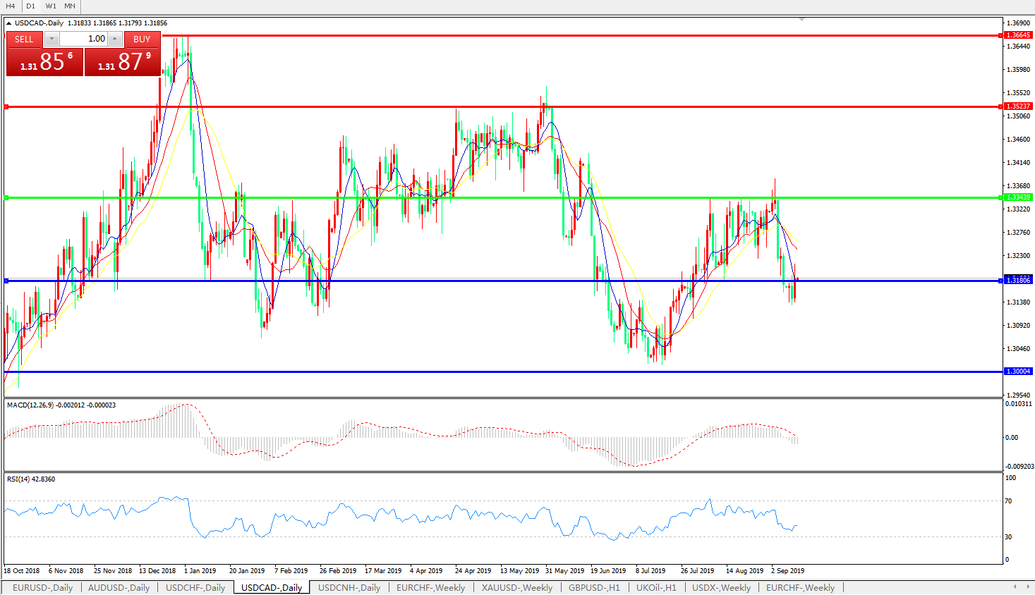 支撑位:1.3180 1.3000
