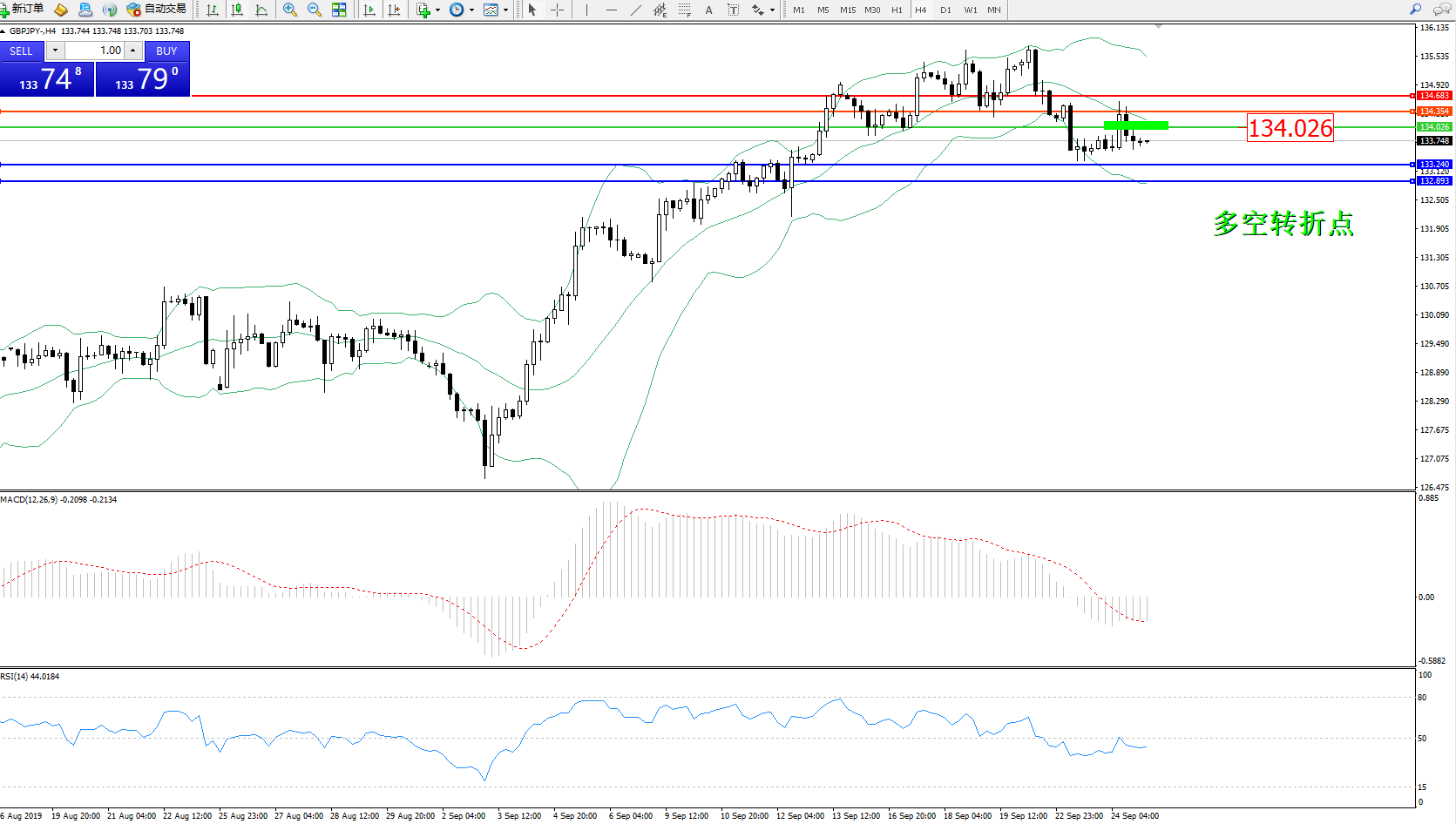 交易策略:134.026下方看跌,目标133.240132.893
