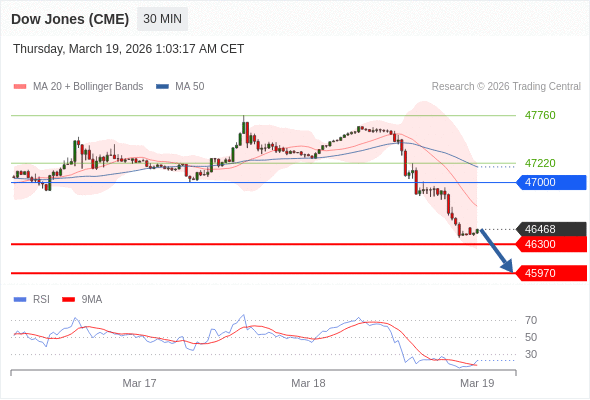在 47000 之下,看跌,目标价位为 46300 ,然后为 45970 。