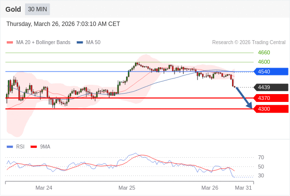 在 4540 之下,看跌,目标价位为 4370 ,然后为 4300 。