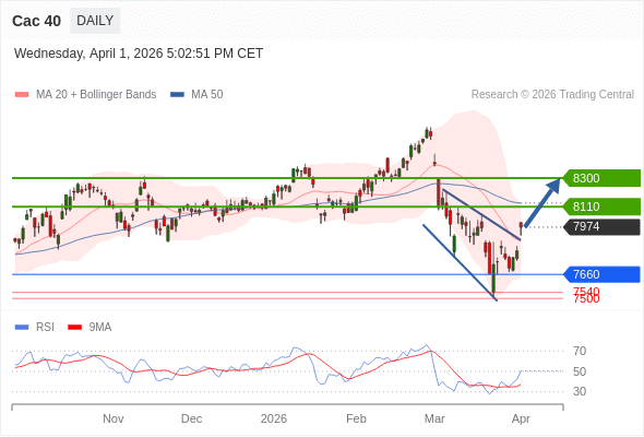 在 7660 之上,看涨,目标价位为 8110 ,然后为 8300 。