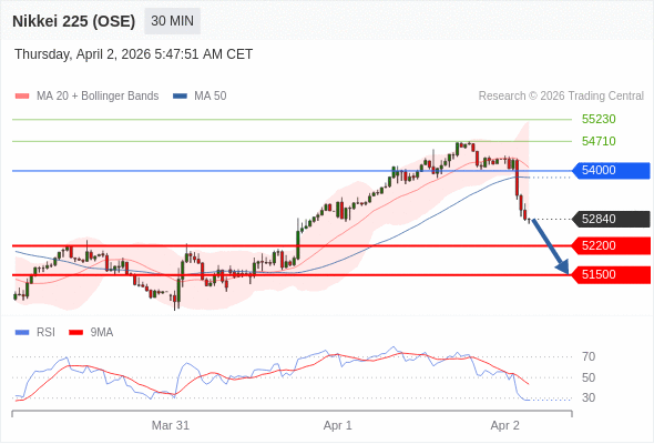 在 54000 之下,看跌,目标价位为 52200 ,然后为 51500 。