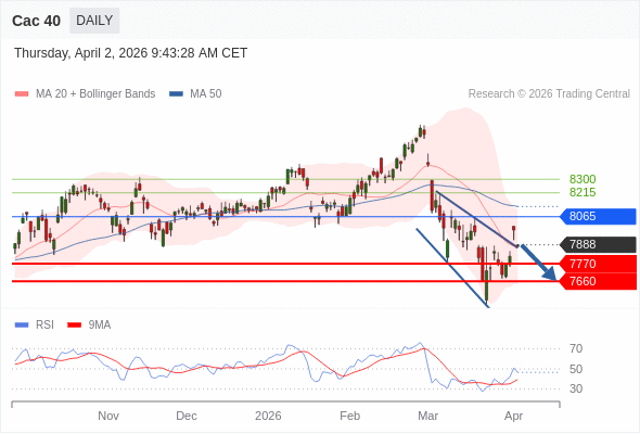 Cac 40 短线: 没有明显变化趋势。