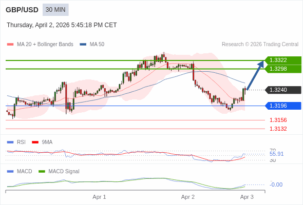 英镑/美元 当日内 : 看涨。