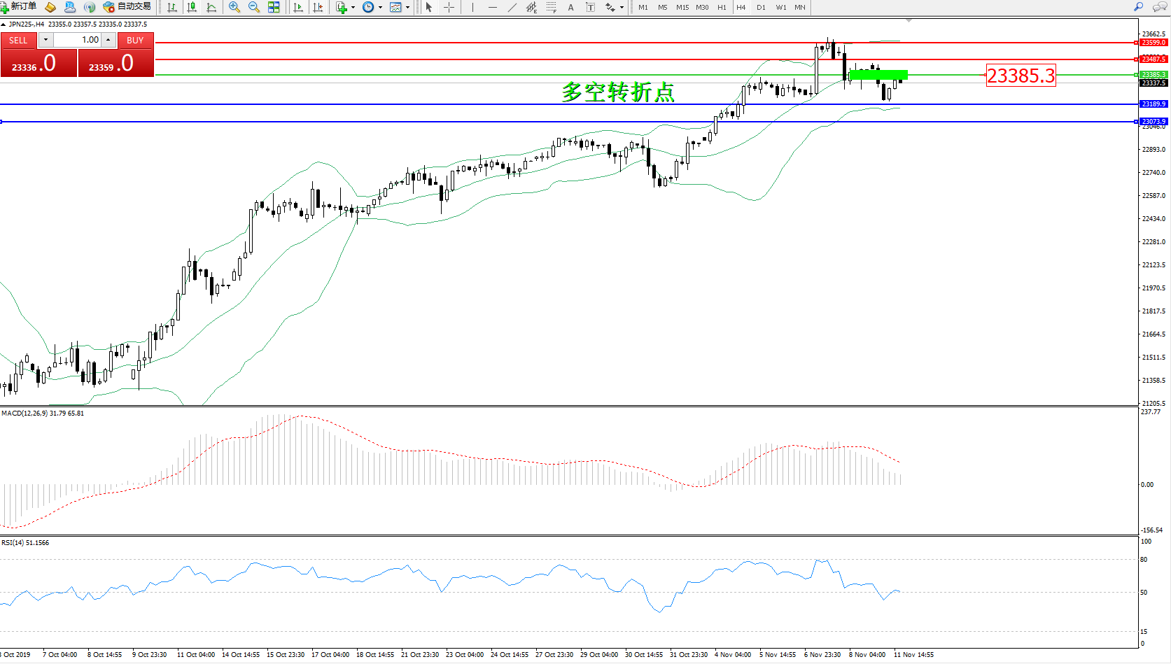 日经指数JPN225——4小时K线图: