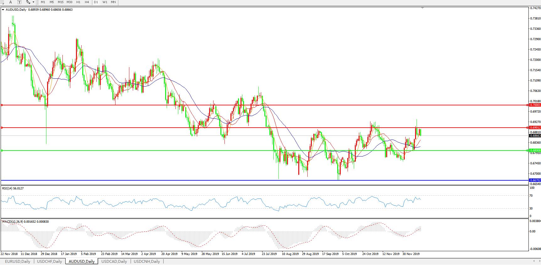交易策略:0.6800上方看涨,目标0.6900、0.7000
