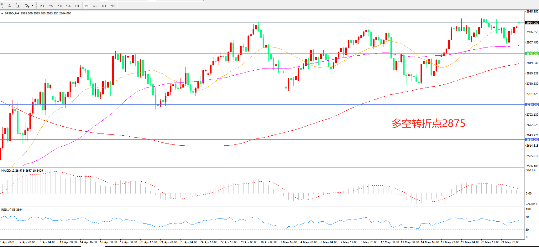 标普500 SP500   4小时图