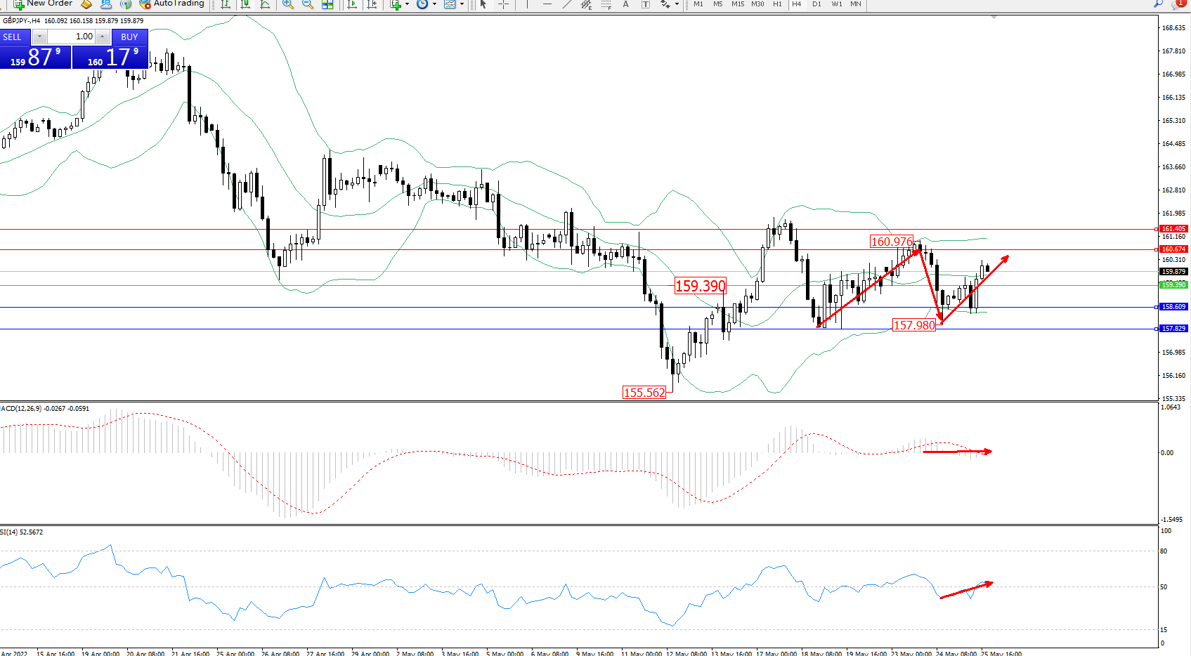 英镑日圆GBPJPY——4小时K线图显示: