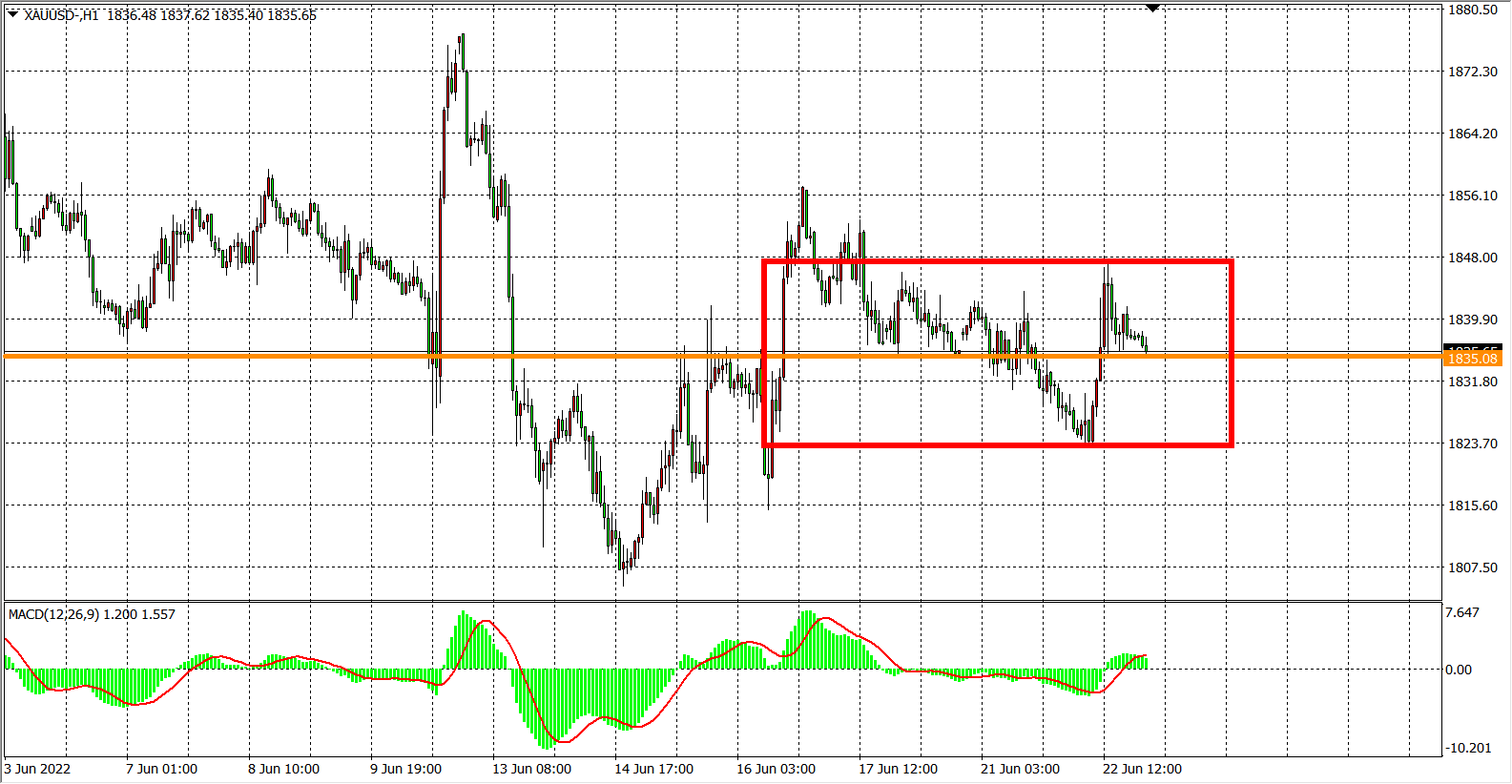 现货黄金XAUUSD    1小时图