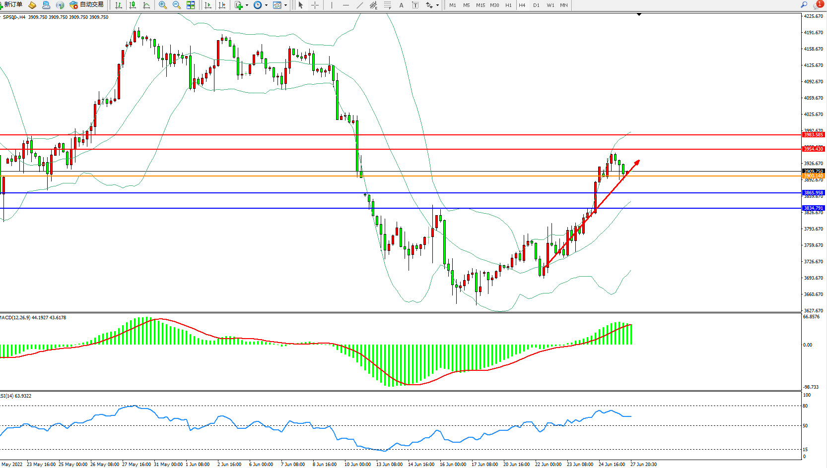 标普SP500——4小时K线图显示: