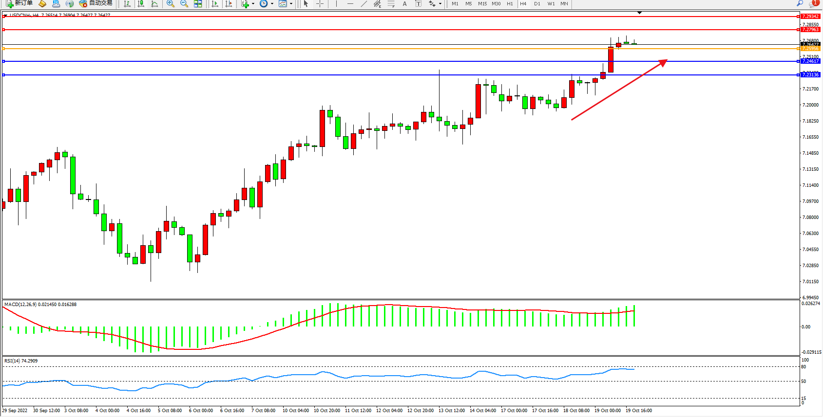 交易策略:7.25956上方看涨,目标7.27963、7.29342