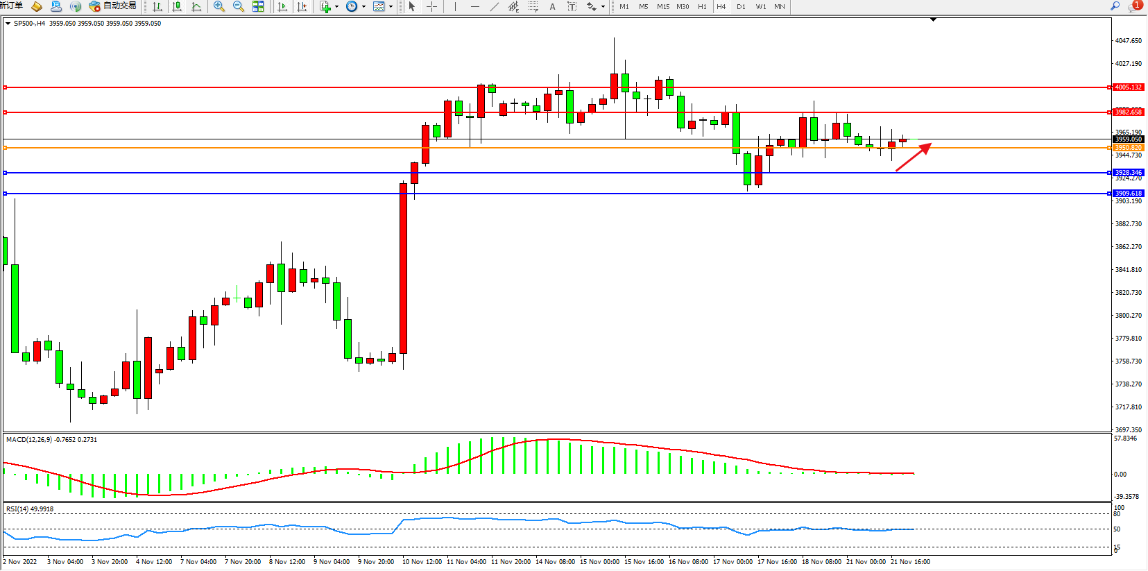 标普500指数11月21日(周一)收盘下跌15.41点,跌幅0.39%,报3949.93点;高盛发布警告称,2023年全球股市表现依旧不会太好,那些现在就希望入场抄底的投资者将会感到失望。到2023年底,标普500指数将在4000点附近徘徊,这意味着该指数将比目前水平增长不到1%。