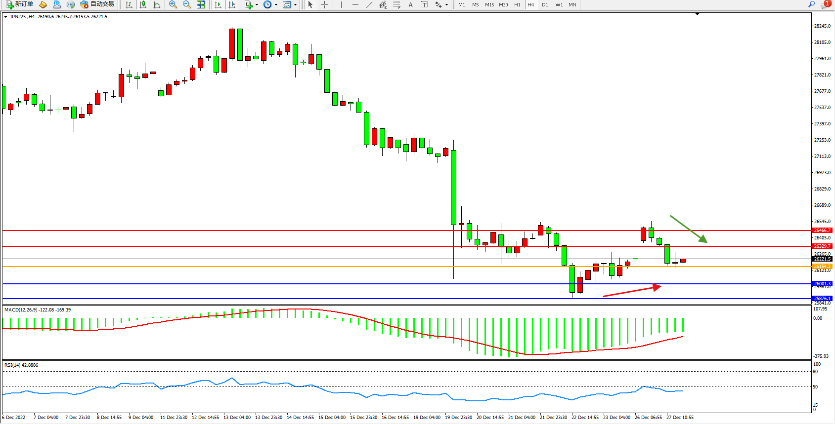日经指数JPN225——4小时K线图显示: