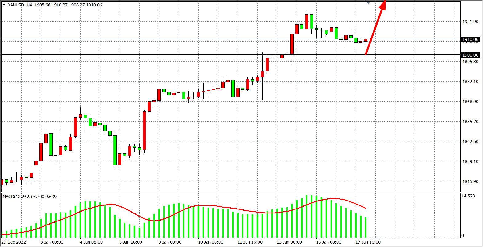 交易策略:在1900.00 之上看涨,目标1920.00 1930.00