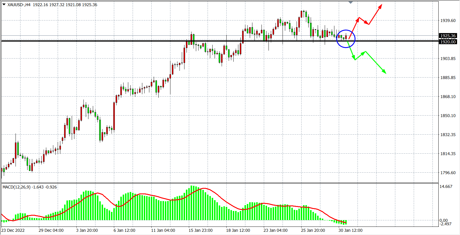 备选策略:在1920.00 之下看跌,目标1900.00 1880.00