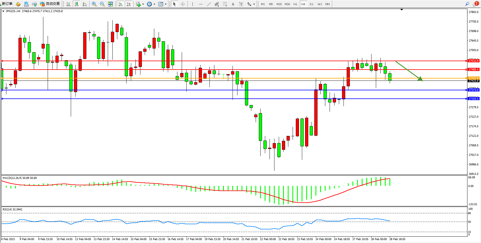 交易策略:27437下方看跌,目标27373、27325
