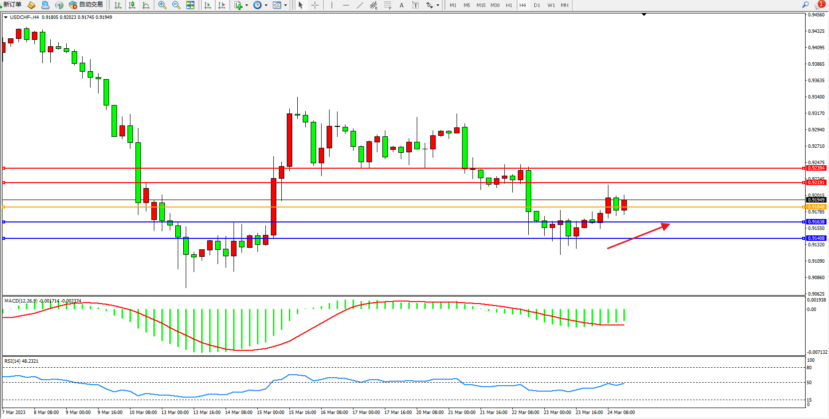美元瑞郎USDCHF——4小时K线图显示: