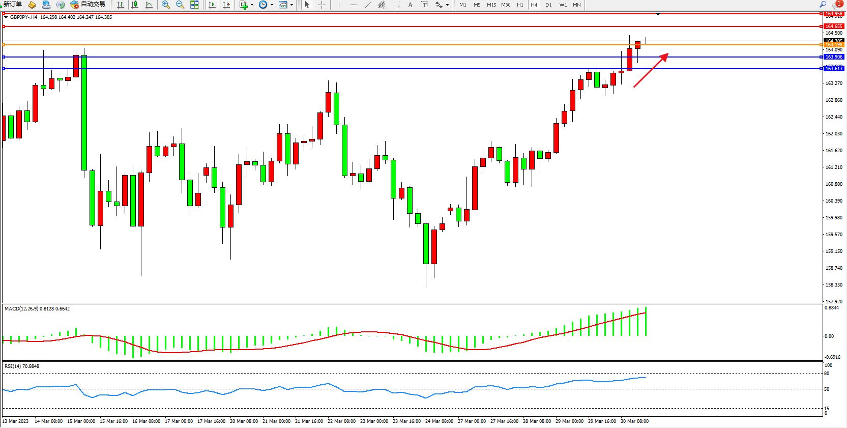 交易策略:164.198上方看涨,目标164.655 164.958