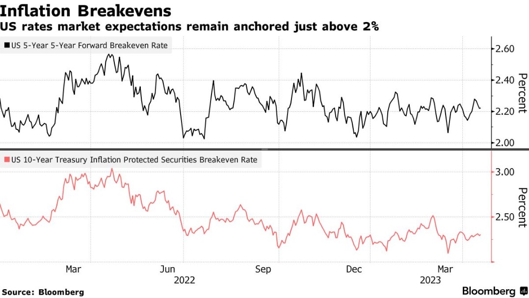 值得注意的是,在过去一年的加息之后,通胀预期已经稳定下来,反映出投资者对美联储的长期信心。一项评估未来十年后半期预期的指标显示,这一时期的年增长率约为2.2%,这与美联储2%的目标一致。
