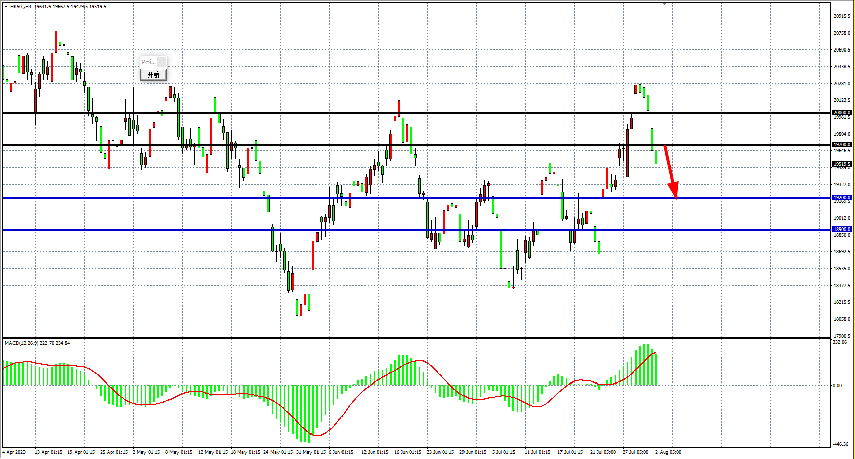 备选策略:19700    下方看跌,目标 19200  18900