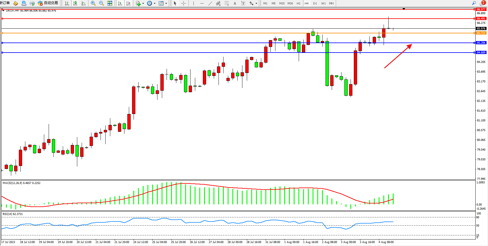 布油维持85.976附近震荡,由于OPEC+和沙特的减产,供应减少,尽管存在衰退担忧,但需求仍有韧性,这使得今年剩余时间的基本面看起来日益看涨。