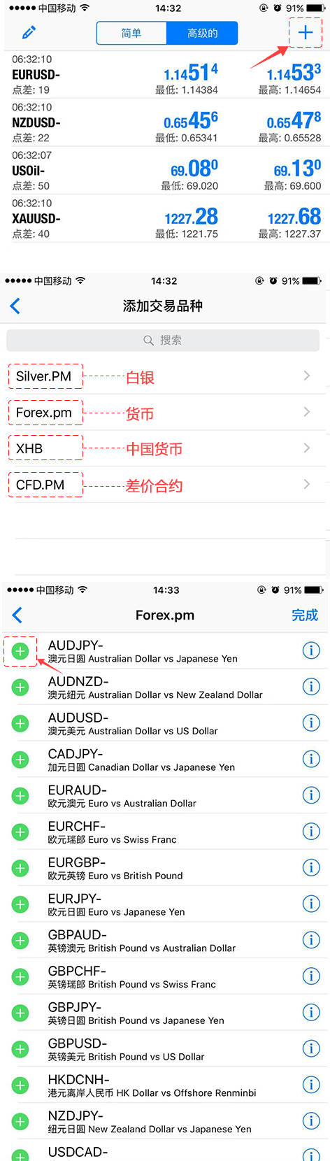 3.点击页面的右上角【+】进入到新订单窗口。点击您可选择交易商品,点击您可切换订单类型。