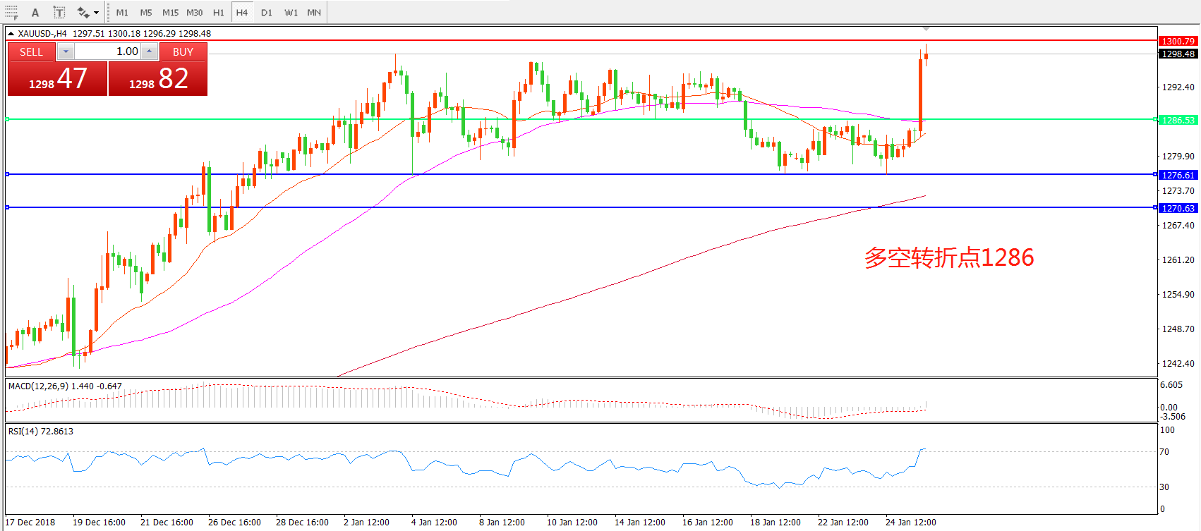 多空转折点:1286.00
